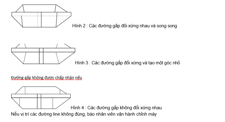 Kiểm tra các đường đã dập định hình từ trước của giấy có được gấp đúng theo đường gấp đỉnh hộp không