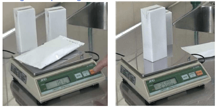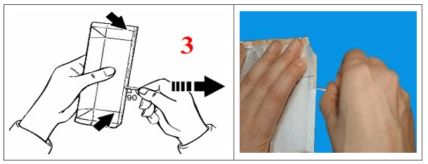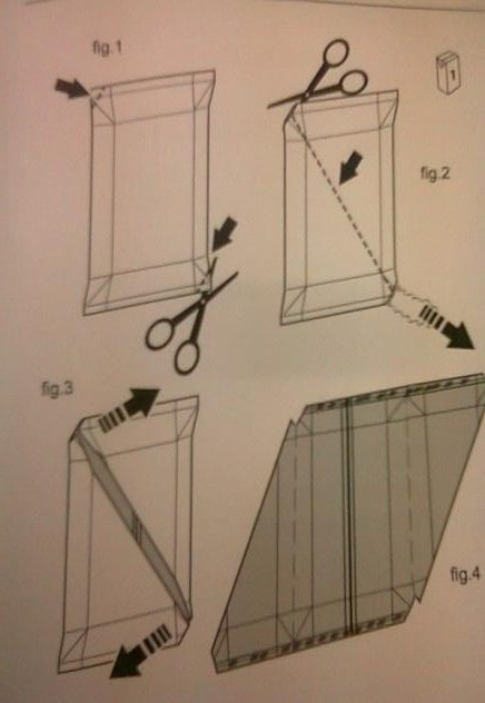 -Cắt hai góc đối diện của bao bì và bỏ phần sản phẩm trong bao bì