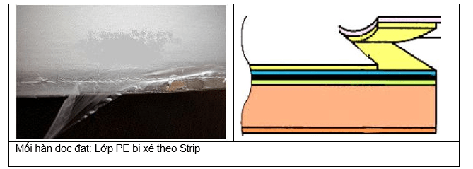 Mối ghép được chấp nhận khi: Mối hàn là tốt nếu strip bị bóc ra kèm theo lớp PE