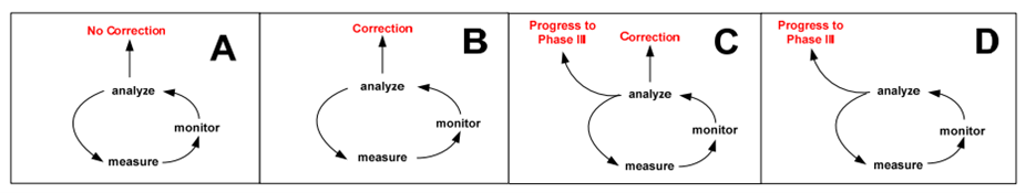 Các hoạt động cải tiến phụ thuộc vào sự không phù hợp hoặc sự không phù hợp tiềm ẩn cụ thể. Mọi dữ liệu trước đó từ Giai đoạn II cần được sử dụng làm đầu vào cho quy trình của Giai đoạn III.