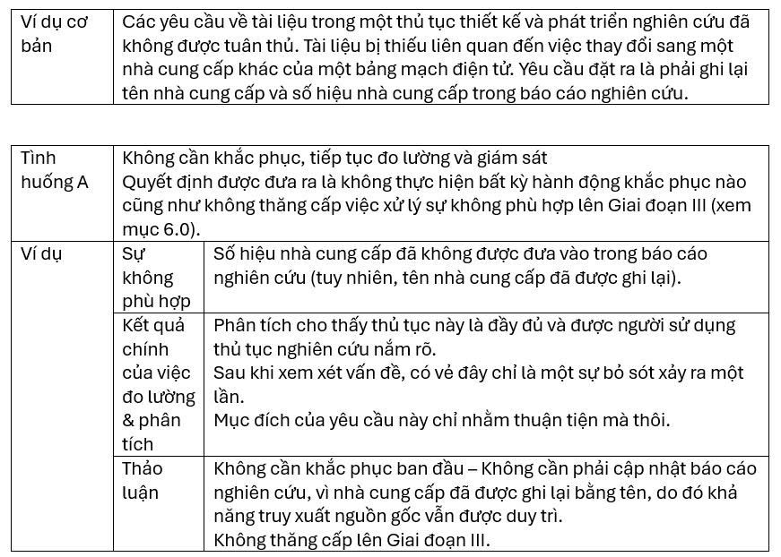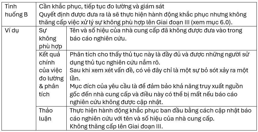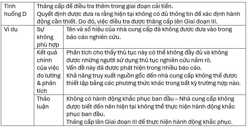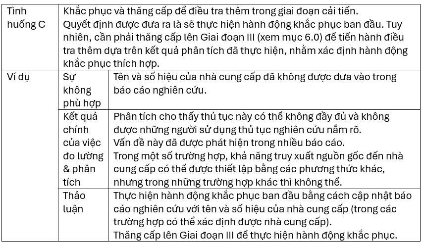 - Cung cấp thông tin bổ sung đòi hỏi phải tiến vào Giai đoạn III (xem mục 6.0), bất kể phân tích nguồn dữ liệu có thăng cấp sự không phù hợp hoặc khả năng xảy ra sự không phù hợp hay không.