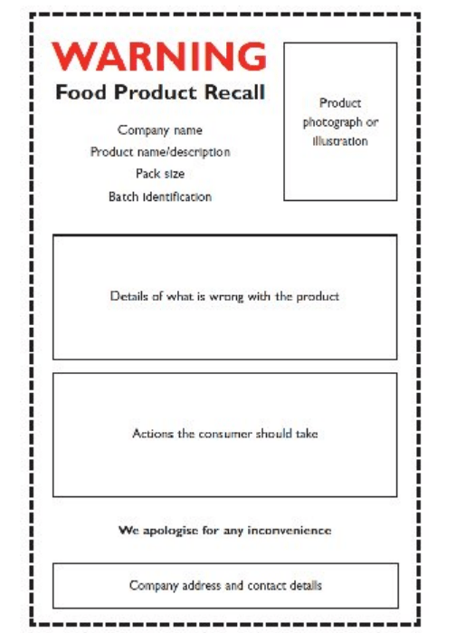 Trong những trường hợp sản phẩm thực phẩm không an toàn có khả năng gây hại cho sức khỏe người tiêu dùng và gây ra rủi ro tức thời, đội ngũ thu hồi sản phẩm phải thông báo việc thu hồi thông qua thông cáo báo chí cũng như đăng thông báo thu hồi trên các tờ báo.