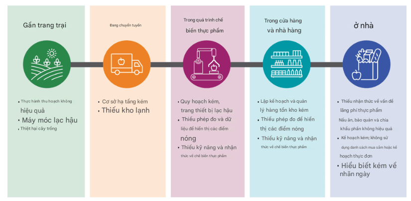 Thực phẩm bị loại bỏ trong giai đoạn từ nông trại đến doanh nghiệp bán hàng cuối cùng được coi là hao hụt thực phẩm. Nguyên nhân thường xuất phát từ vấn đề hệ thống.
