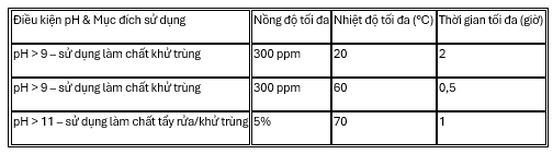 Bảng 6 – Nồng độ tối đa khuyến nghị của môi trường chứa NaOCl và thời gian tiếp xúc, có xét đến nguy cơ ăn mòn rỗ trên thép không gỉ