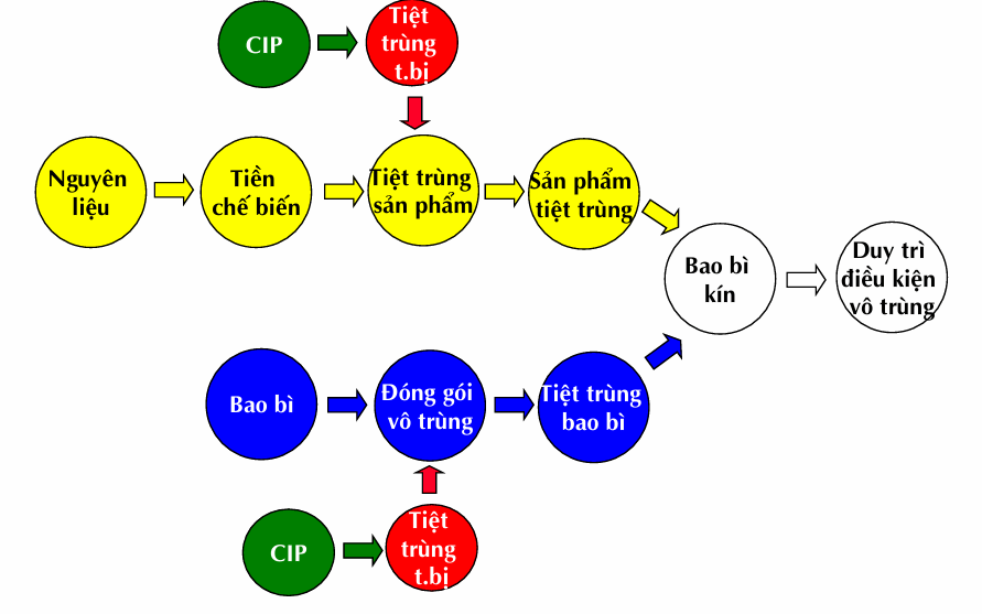 - Tiệt trùng (Sterilisation): Một quy trình được áp dụng cho sản phẩm nhằm tiêu diệt tất cả vi sinh vật, thường bằng xử lý nhiệt ở nhiệt độ trên 100°C.