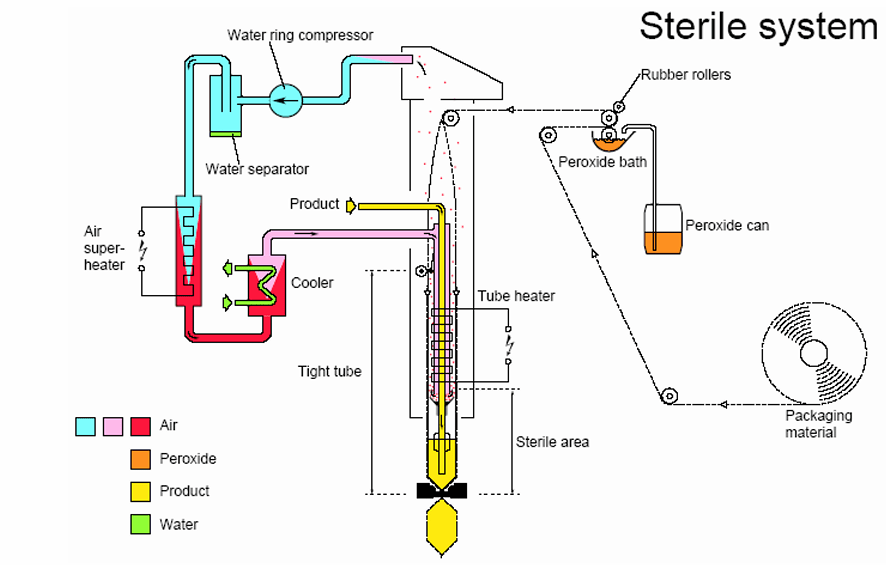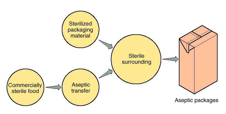 Một quy trình bao gồm việc tiệt trùng vật liệu bao bì, rót sản phẩm vô trùng thương mại trong môi trường vô trùng và tạo ra các bao bì đủ kín để ngăn ngừa tái nhiễm, tức là được hàn kín hoàn toàn (hermetically sealed).